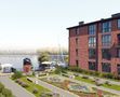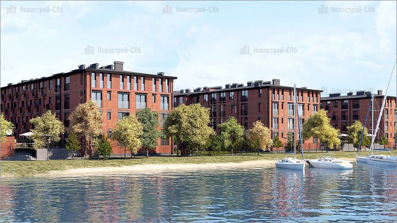 Комплекс состоит из пяти 4-х этажных домов, три из которых будут иметь П-образную форму и образуют закрытые дворы. В отделке фасада используется красный кирпич, в квартирах большие высокие окна, французские балконы, все эти детали гармонично вписываются в образ города-порта. Защищенные с двух сторон фасадами дворы трех корпусов будут полностью обращены к морю. Благодаря такому решению практически все квартиры в доме — видовые.