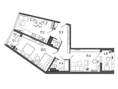 Оочень широкий выбор планировок, сложность была именно в этом, не знаешь что выбрать! Это несомненно плюс, не в каждом жк есть такоой выбор. Мы взяли двухкомнатную почти 71 квадрат. Понравилось то, что ванная с тулаетом разделяют комнаты. Удобно жить с ребёнком в такой квартире, хоть не будем друг у друга за стеной.