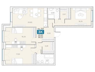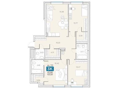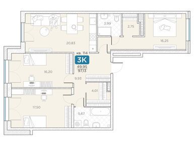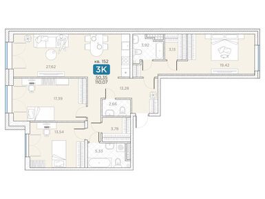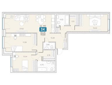 Планировки трехкомнатных квартир в ЖК «Гильдия»