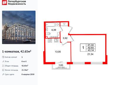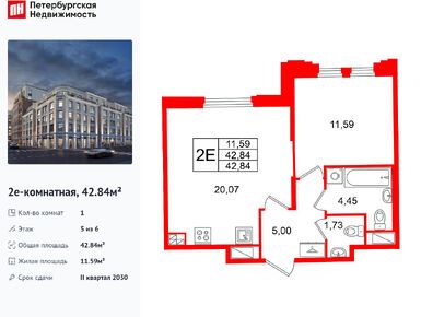 1-комн. кв, 42.84 м