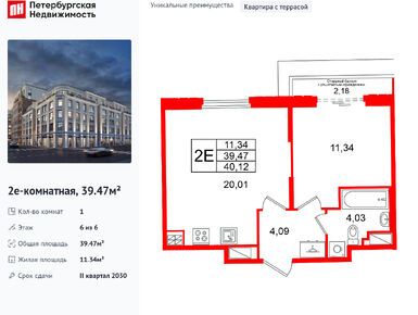 1-комн. кв, 40.47 м