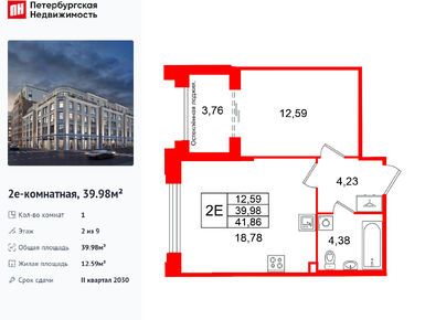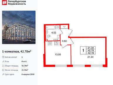 1-комн. кв, 42.78 м