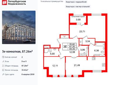 2-комн. кв, 87.26 м
