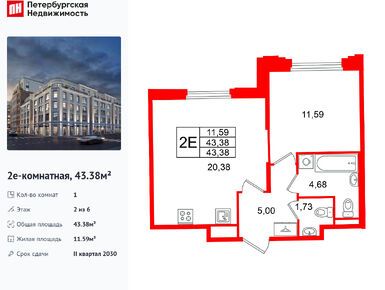 1-комн. кв, 43.38 м