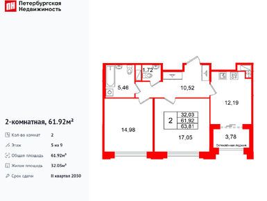 2-комн. кв, 61.92 м