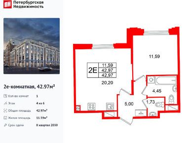 1-комн. кв, 42.97 м