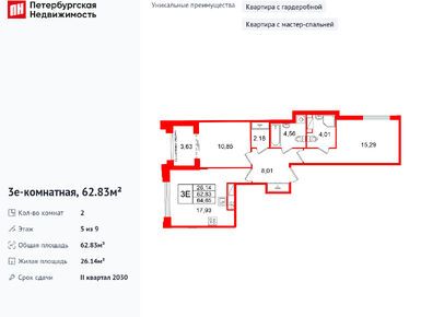2-комн. кв, 62.83 м