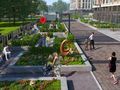 В генеральном плане предусмотрено масштабное озеленение территории и организация прогулочных и рекреационных зон. Здесь проложены широкие тротуары для пешеходов, установлены урны и лавочки, смонтирована единая система освещения.