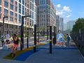 В благоустроенном просторном дворе корпуса созданы все условия для комфортного и интересного отдыха взрослых и детей. Застройщик установит несколько современных игровых городков, соответствующих всем стандартам безопасности и качества, и рассчитанных на детей разного возраста. Для любителей активного образа жизни доступны спортивные площадки с баскетбольными и мини-футбольными полями, теннисным кортом, столами для игры в пинг-понг и современными снарядами и тренажерами.