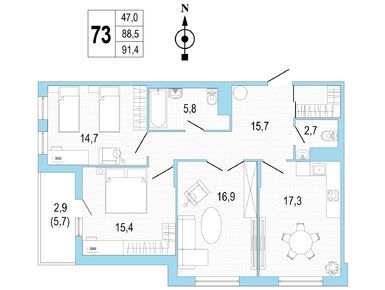 Возведено 2 корпуса на 210 квартир. Высота потолков от 3.06 метров, выполнена качественная предчистовая отделка квартир. На верхних этажах расположены квартиры эксклюзивного формата с камином и сауной.