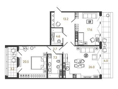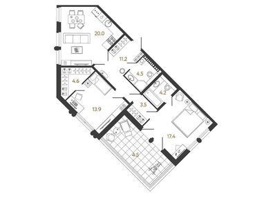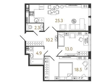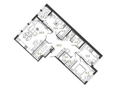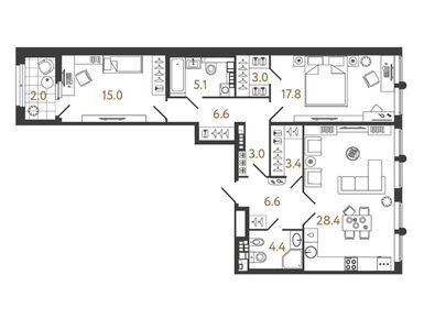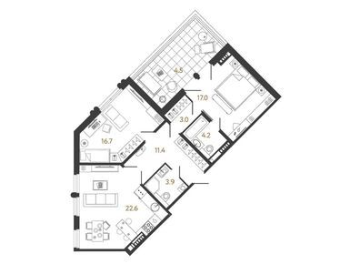 Планировки трехкомнатных квартир в ЖК «Миръ»
