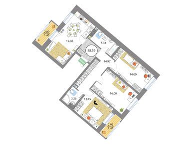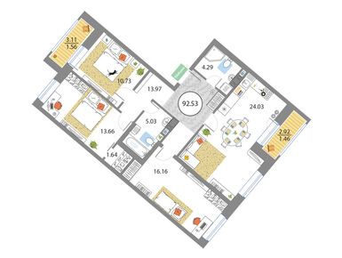 На этаже располагается не более 4 квартир. Застройщик предусмотрел возможность объединения помещений, поэтому в ЖК «Модум» можно купить целый этаж под семейную резиденцию.