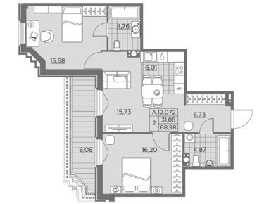Высота потолков составляет 2,9 метра, предусмотрены широкие панорамные окна с рамой 2,3 метра. В квартирах на 11-12 этажах расположены уличные гостиные площадью 7,8 — 41,5 м2.