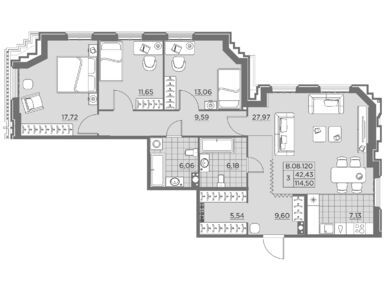 собственным санузлом в евро-трехкомнатных и евро-четырехкомнатных квартирах.