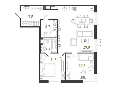 Купила себе свое первое жилье - однушку в Струнах. Выбирала по локации и планировке. Самое главное что есть большая кухня, больше 20 метров. Просто не понимаю, когда кухня маленькая, где принимать гостей, не в спальне же… а так пространство зонировано, по проекту половина кухни предназначена для приема пищи и отдыха, половина - для приготовления еды.