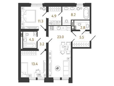 Планировки трехкомнатных квартир в ЖК «Коллекционер»