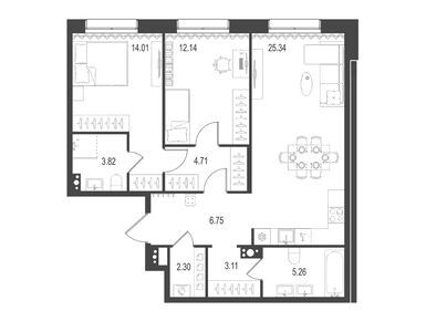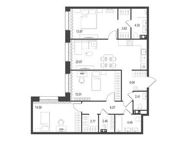 Планировки трехкомнатных квартир в ЖК «Остров первых»