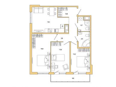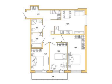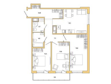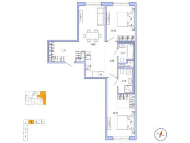 Планировки четырехкомнатных квартир в ЖК OKLA