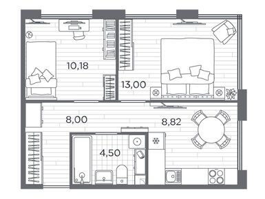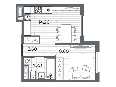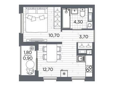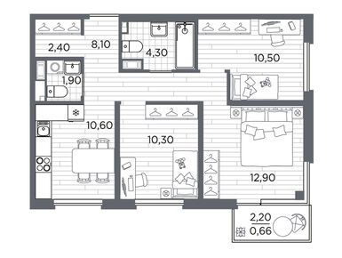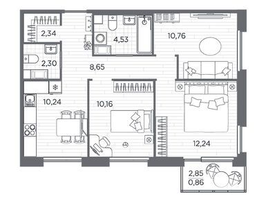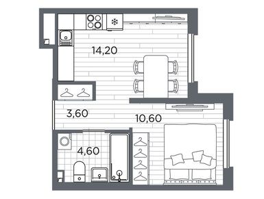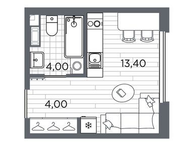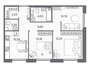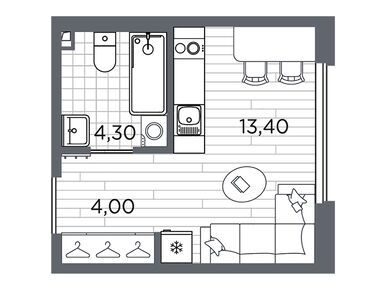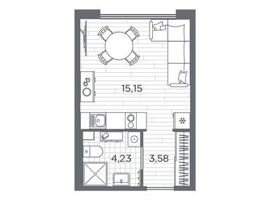 В середине сентября 2025 года в продаже есть 341 квартира: от студий площадью 19,65 кв. м до 3-комнатных площадью 79,24 кв. м. Есть варианты с террасами, балконами и гардеробными. Все квартиры продаются с отделкой, цены — от 4,35 млн рублей за студию площадью 23,68 кв. м.