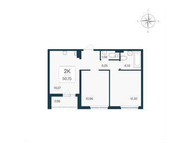 2-комн. квартира 50,75 м2 8 250 000
