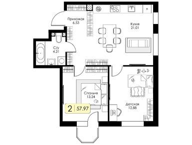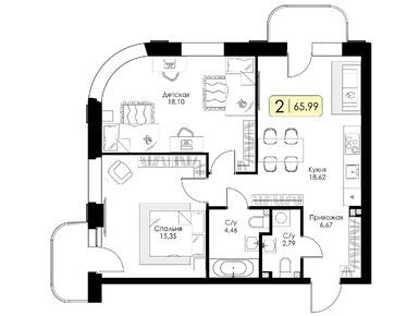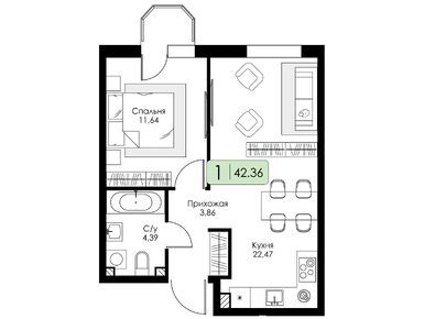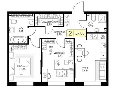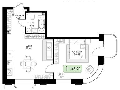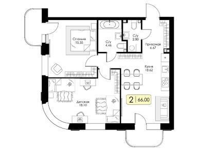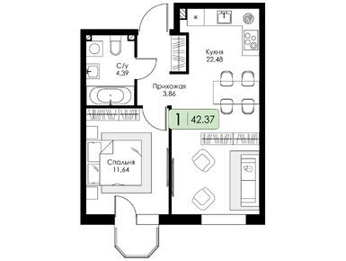 Очень довольна выбранной планировкой. Кухня, гостиная просто огромные, а спальня правильной формы, удобно для расстановки мебели. Спасибо за такие решения!
