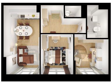 Все квартиры в «Янинском лесу» сдаются с готовой отделкой. В помещениях будет выполнена разводка электрики и коммуникаций, стяжка пола, поклеены белые обои под покраску, уложен ламинат и смонтирован натяжной потолок.