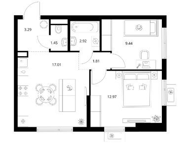Из плюсов у нее удобная планировка по ней у нас выходит 2 спальни, гостиная и кухня совещенная и 2 санузла (один сделаем под гостевой). Сейчас в процессе оформления покупки, надеюсь все пройдет без проблем