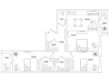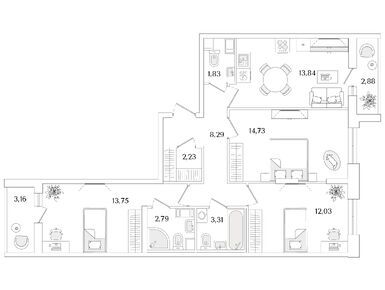На верхних этажах ЖК «Кинопарк» можно купить квартиру с 3-метровыми потолками. Высота потолков на всех остальных этажах составит 2,73 м. Также есть варианты с кухнями-гостиными, мастер-спальнями, вместительными гардеробными, просторными лоджиями.
