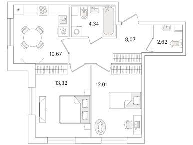 В октябре 2025 года в ЖК «Кинопарк» можно купить квартиру в корпусах первой и второй очереди. В продаже есть однокомнатные, двухкомнатные и трехкомнатные лоты, а также студии. Площадь квартир — от 17,7 до 88,7 кв. м.
