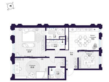 Средняя площадь лотов – 59,8 кв. м, высота потолков от 3,02 до 4,08 м. Сдача квартир производится без отделки. Введение объекта в эксплуатацию запланировано на 4 квартал 2028 года.