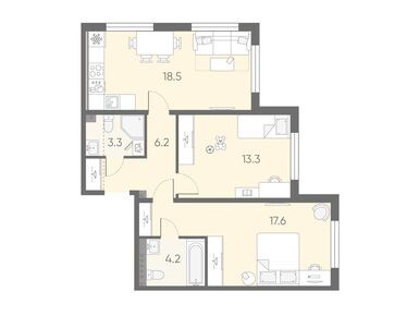 Планировки трехкомнатных квартир в ЖК «Пулково Лейк»