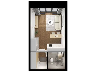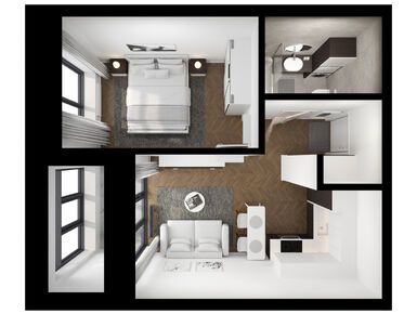 С окнами в пол планировки куда интереснее смотрятся, в квартире сразу просторнее и светлее. Однушка визуально больше становится.