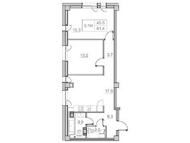 1-комн. помещение, 61.40 м