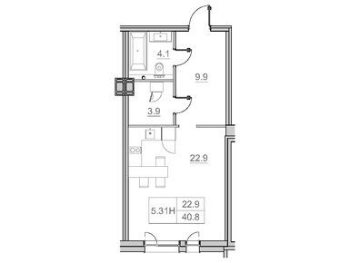1-комн. помещение, 40.80 м
