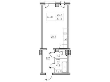 1-комн. помещение, 37.40 м