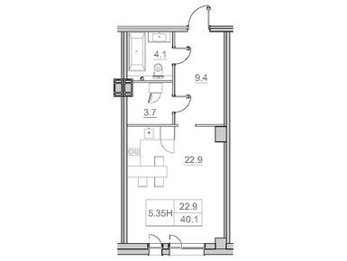 1-комн. помещение, 40.40 м