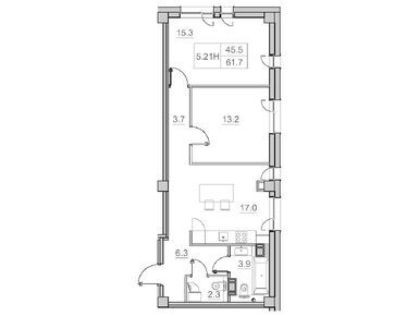 1-комн. помещение, 61.70 м
