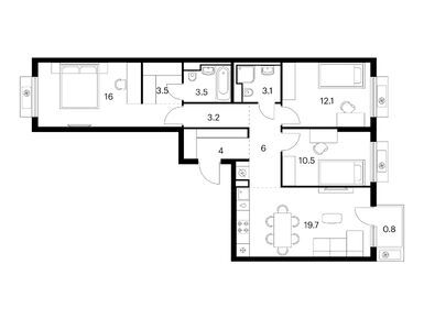 Планировки трехкомнатных квартир в Витебском парке