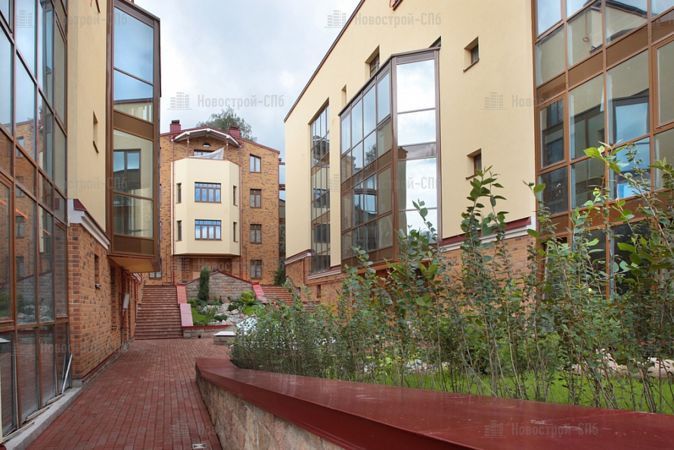 В домах элит-класса спроектированы квартиры с каминами и просторными террасами, площадью от 111 до 150 кв. м. В большие окна вставлены двухкамерные стеклопакеты с деревянными рамами.