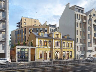 отреставрированного бывшего «Дома литераторов». Кирпичные наружные стены пятиэтажной