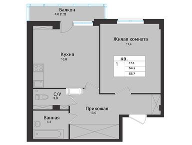1-комн. кв, 59.20 м