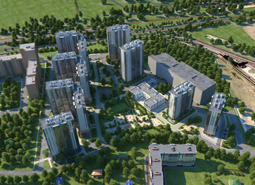 Всего на участке площадью 6,6 га планируется строительство 8 домов высотой 18-25 этажей. Квартирография проекта представлена студиями, одно-, двух- и трехкомнатными квартирами.