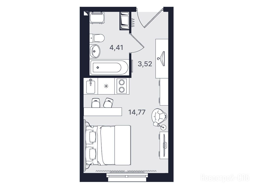 помещение-студия, 22.70 м2, 19 этаж
