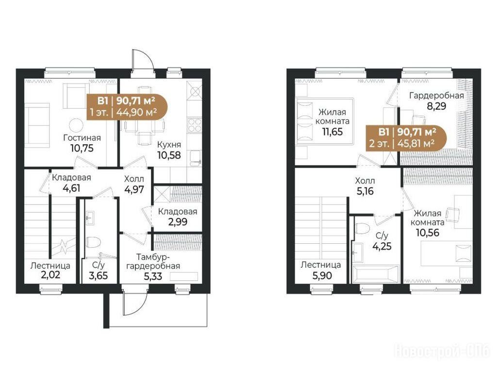 3-комн. таунхаус, 95.30 м2, 2 этажа
