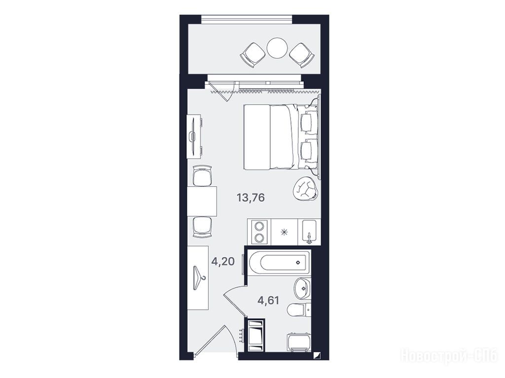 помещение-студия, 22.57 м2, 19 этаж