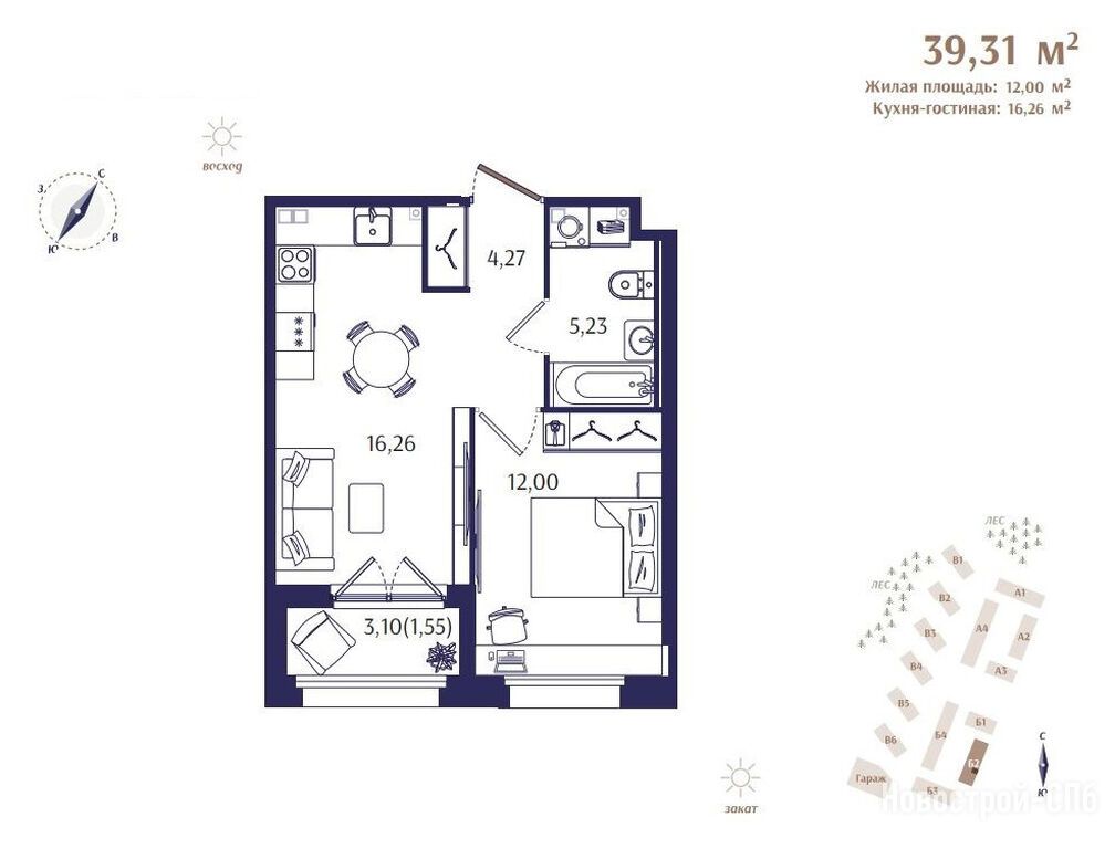 Продается однокомнатная квартира в новостройке ЖК Ranta Residence (Ранта Резиденс) по адресу Санкт-Петербург, Курортный, Зеленогорск, Кривоносовская улица, 57, ЖК Ranta Residence, корпус Б2. Общая площадь квартиры - 39.31 кв. м. , компания-застройщик — LAR Development (ЛАР Девелопмент), Запстрой, СЗ Ранта Резиденс. Стоимость квартиры — 16 903 300 руб. Способы оплаты можно уточнить у продавца. Срок сдачи — 2 квартал 2026. Более подробная информация по телефону.