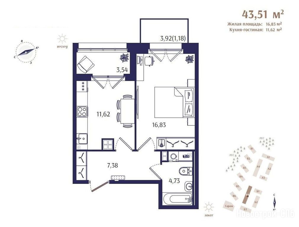 Продается однокомнатная квартира в новостройке ЖК Ranta Residence (Ранта Резиденс) по адресу Санкт-Петербург, Курортный, Зеленогорск, Кривоносовская улица, 57, ЖК Ranta Residence, корпус Б4. Общая площадь квартиры - 43.51 кв. м. , компания-застройщик — LAR Development (ЛАР Девелопмент), Запстрой, СЗ Ранта Резиденс. Стоимость квартиры — 18 274 200 руб. Способы оплаты можно уточнить у продавца. Срок сдачи — 2 квартал 2026. Более подробная информация по телефону.