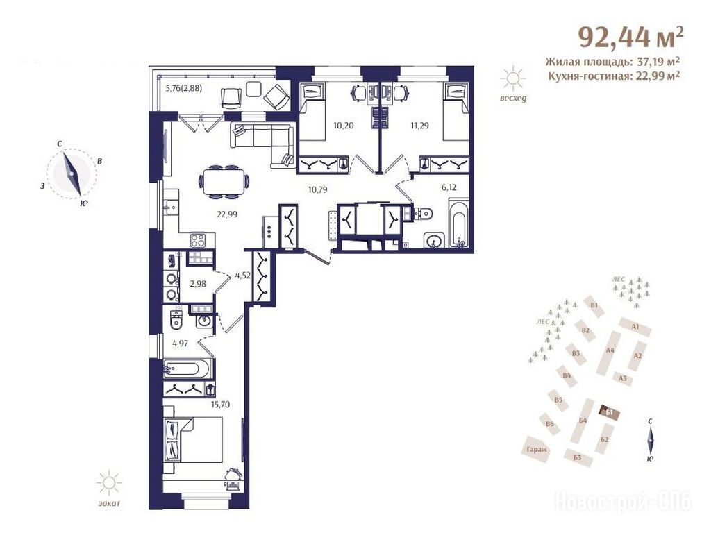 Продается трехкомнатная квартира в новостройке ЖК Ranta Residence (Ранта Резиденс) по адресу Санкт-Петербург, Курортный, Зеленогорск, Кривоносовская улица, 57, ЖК Ranta Residence, корпус Б1. Общая площадь квартиры - 92.44 кв. м. , компания-застройщик — LAR Development (ЛАР Девелопмент), Запстрой, СЗ Ранта Резиденс. Стоимость квартиры — 38 362 600 руб. Способы оплаты можно уточнить у продавца. Срок сдачи — 2 квартал 2026. Более подробная информация по телефону.