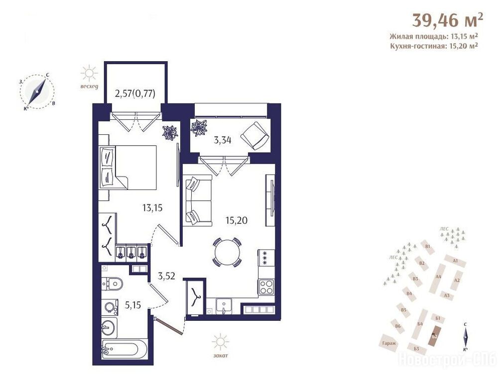 Продается однокомнатная квартира в новостройке ЖК Ranta Residence (Ранта Резиденс) по адресу Санкт-Петербург, Курортный, Зеленогорск, Кривоносовская улица, 57, ЖК Ranta Residence, корпус Б2. Общая площадь квартиры - 39.46 кв. м. , компания-застройщик — LAR Development (ЛАР Девелопмент), Запстрой, СЗ Ранта Резиденс. Стоимость квартиры — 16 967 800 руб. Способы оплаты можно уточнить у продавца. Срок сдачи — 2 квартал 2026. Более подробная информация по телефону.