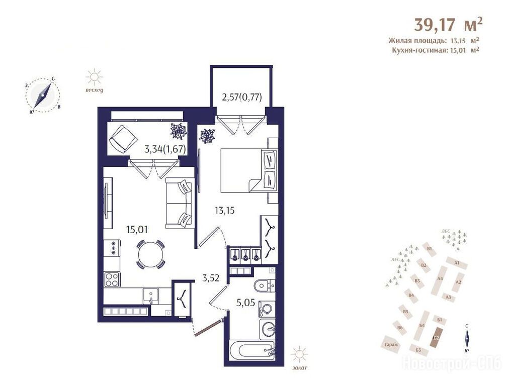 Продается однокомнатная квартира в новостройке ЖК Ranta Residence (Ранта Резиденс) по адресу Санкт-Петербург, Курортный, Зеленогорск, Кривоносовская улица, 57, ЖК Ranta Residence, корпус Б2. Общая площадь квартиры - 39.17 кв. м. , компания-застройщик — LAR Development (ЛАР Девелопмент), Запстрой, СЗ Ранта Резиденс. Стоимость квартиры — 17 038 950 руб. Способы оплаты можно уточнить у продавца. Срок сдачи — 2 квартал 2026. Более подробная информация по телефону.